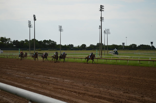 I wander around inside the building for a minute waiting to cool off then I head outside to find my spot. I have to get a good seat! Three rows back seems pretty good. . A lady next to me happily informs me that this area is for the mega fans. I’m ready to see the man! For the next two hours I rotate between watching the last couple horse races, going inside occasionally to cool off and sitting in my seat.